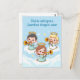 Three cute guardian angels playing trumpets Postcard. Customizable text: Divine whispers, guardian angels near.