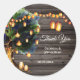 A wonderful and vibrant illustration featuring a large oak tree filled with faux shining hanging lanterns and string lights set against a faux brown wood grain background. These are ideal for rustic country fall / autumn, summer, spring or winter "thank you" cards or gifts to friends and family for attending your special wedding; engagement; anniversary; wedding or event.