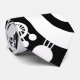 An attractive abstract design made up of circles, some solid, some double, some spoked like wheels. All the circles are connected with a network of lines, like cords, strings or wires or maybe stems and tendrils. Creating a composition that might be a detail of the inner workings of some sort of mechanism, some kind of diagram, maybe a microcosmic map of the universe. The colours are white on a black background. In this updated version the design is also repeated on the back.