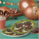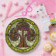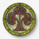 Gorgeous & intriguing, the original digital painting adorning this paper plate is a real cross-cultural gem! From a traditional Japanese water lily design, artist Leslie Sigal Javorek has created a rich Tree of Life with agate & burl wood finishes, surrounded by a ring of mossy green foliage dotted w/ Hebrew symbols for "Life" & stylized Magen Davids, all set against a background that looks like a stone mosaic.