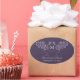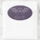 An oval monogrammed wedding sticker with a Tree of Life illustration of entwined tree branches and lilac leaves on a dark eggplant purple background to add your wedding date and names. These stickers are not limited to a single purpose. Use them to seal envelopes, adorn invitations, decorate favours, or add a touch of sophistication to any wedding item. They seamlessly blend aesthetics with versatility, ensuring your personal touch is felt throughout your celebration.