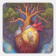 Tree Of Life Heart Surreal Nature Art Square Sticker