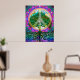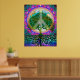 Tree of Life Peace is a very brightly coloured tree of life in psycadelic colours featuring a peace sign in front of earth and an intricate roots system. It was created by Amelia Carrie who grew up during the outskirts of San Francsico during the 60's and 70's and was thus influenced by hippie artwork for this piece.