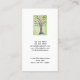 This unique business card is decorated with a print of a mosaic tree made of tiny pieces of brightly colored glass on a soft green background.