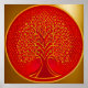 Red and gold tree of life with gold background.