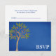 A tree of life themed RSVP response card. Featuring a swirl tree on a dark blue background.