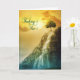 A gorgeous nature scene with a small waterfall trickling down the side of a large rock or mountainside and the sun lighting up a single tree on this thinking of you card.