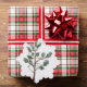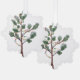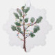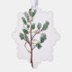a snow covered baby white pine wrapped in Christmas lights, painted in watercolor and printed on a paper ornament