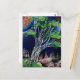 Tree Painting with blue city and orange sun Postcard