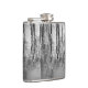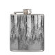 This black, silver, white and grey fine art hip flask features tree reflections which make a shimmering abstract pattern on the pond.