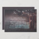 Rustic wedding invitation features tree with hanging string lights and rural countryside fence. Perfect carved love heart invite for summer wedding in the farm, forest, garden or ranch. Inspired by trees and warm summer nights perfectly represents romance and makes this dreamy atmosphere.
