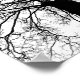 Photograph of a silhouette of an old tree with many branches in black and white.