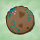 A cute round pillow for the nursery room with a woodland theme . It features a tree slice with a few leaves  , some pink berries and a little bear on the front side . You can also add the baby's initial and first name . On the back your have brown faux stitched hearts instead of the bear .