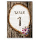 Tree Slice Stump with Flowers Wedding Table Number Card