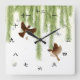 Tree Sparrows Kanji Numbers Chinese & Japanese Squ Square Wall Clock