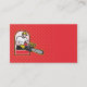 business card ideal for arborist, tree surgeon, tree cutter,landscaper, gardener,trimmer,pruner, grounds maintenance with card showing illustration of a tree surgeon with chainsaw done in retro style.