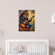 This striking painting captures a majestic lion, adorned with sunglasses and a leather jacket, fully immersed in playing an electric guitar while sitting within the natural embrace of a tree trunk. The surrounding rough bark and hints of green leaves add to the wild aesthetic. The artist's use of bold, textured brushstrokes emphasizes the raw power and "Rock or Die" attitude of this unexpected king of rock