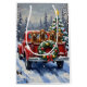 Celebrate the holiday season with this energetic Treeing Walker Coonhound Christmas design! This spirited scene features three handsome, tricolor Treeing Walker Coonhounds sitting attentively in the back of a classic red pickup truck, nestled in a picturesque snowy winter forest. The vintage truck is adorned with a festive Christmas wreath, twinkling with red and gold ornaments and warm lights. Gentle snowflakes fall around the scene, and a decorated Christmas tree in the background adds to the magical winter wonderland. This design perfectly captures the joyful spirit of the holidays, making it a wonderful Christmas gift for any Treeing Walker Coonhound owner, dog lover, or enthusiast of unique festive dog breeds.