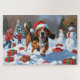 Treeing Walker Coonhound Snow with Christmas Hat Jigsaw Puzzle