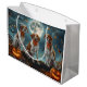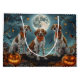 Unleash the spooky spirit with this eerie Halloween design featuring a pack of dogs under a dark, moonlit sky, surrounded by flying bats and glowing pumpkins. Perfect for those who love a touch of frightful fun with their furry friends!