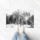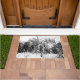 Doormat in a Winter scene of snow-covered trees with a winter woodland background - digitally enhanced photography in black and white