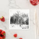 Paper napkins in a Winter scene of snow-covered trees with a winter woodland background - digitally enhanced photography in black and white