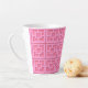 Ajoutez un peu de Palm Springs moderne du milieu du siècle partout où vous allez avec cette tasse en latte motif de Retro Pink Trellis. Il s'inspire de blocs de brise en béton vintage. L'architecture déconstruite des années 1950 donnera une sensation de design instantané à la vie quotidienne.