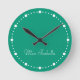 Trend Colour Jade Green White Dots Name Round Cloc Round Clock