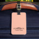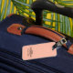 Modern and stylish vertical Luggage Tag with decorative lineart element in tattoo style and customizable name and phone / email in classic black.