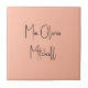 Elevate your home decor with our modern and stylish ceramic tile, featuring a customizable name in a charming handwritten font in classic black, looking like a signature.