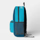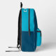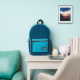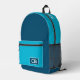 Trendy and minimalist vivid cyan & blue backpack with two letter monogram and name written in a modern font.