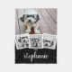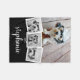 Trendy 4 Photo Collage Script Name White Black Fleece Blanket