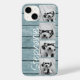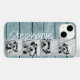 Trendy 4 Photos and Name - Blue Wood print Case-Mate iPhone Case
