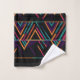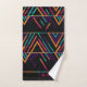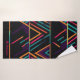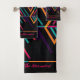 A trendy 80s design, this bath towel set features a black background with pink, purple, blue, orange stripes. Customize your name in pink.