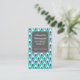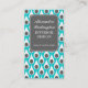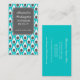 This interior designer business card has a bright aqua blue, grey, and white abstract vintage peacock feather design in the background on the front. You can easily customize the business information on the front and back.