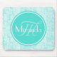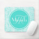 Trendy Aqua Mint Crackle Pattern With Monogram Mouse Pad