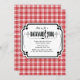 An easy to personalize invitation! The red and white picnic-tablecloth-pattern is the backdrop for this trendy design. The overlay panel is preprinted with the words "join us for a backyard bbq". Just add your personalized information. The card is easy to customize with your wording, font, font colour and choice of six paper types.