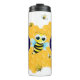 Adorable Bee & Honey Hives thermal tumbler. Futures a smiling bee with big blue eyes, yellow small bees, and a hive full of honey. Another item added to this Adorable Blue Eye Bee & Honey Hives Collection.