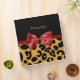 A trendy black and gold leopard print pattern1.5" Binder with a cute red ribbon bow wrapped like a present. Personalize by adding your name. Perfect present for the chic and elegant woman!