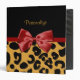 Trendy Black and Gold Leopard Print Red Ribbon Bow Binder
