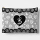 Trendy Black And Silver Heart With Dots And Swirls Accessory Pouch
