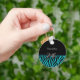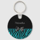 Trendy Black And Teal Zebra Print With Ribbon Keychain