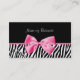 Trendy Black And White Zebra Print Pink Ribbon Business Card