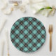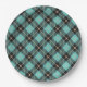 Trendy Black Aqua Plaid Pattern Paper Plate