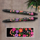 Trendy Black Floral Pattern with Custom Monogram Ink Pen