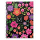Trendy Black Floral Pattern with Custom Monogram Notebook