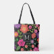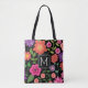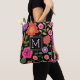 Trendy Black Floral Pattern with Custom Monogram Tote Bag