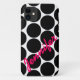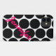 Trendy, Girly iPhone 5 Case you can personalize with your name in a pink cursive font on a bold, modern black polka dots pattern background. Elke Clarke Design© for iPhoneCaseGallery A great gift for her.