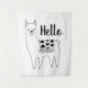 Modern black and white llama sketch with the word "hello" wall tapestry.