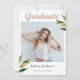 Trendy Black White Greenery Photo Graduation Party Invitation